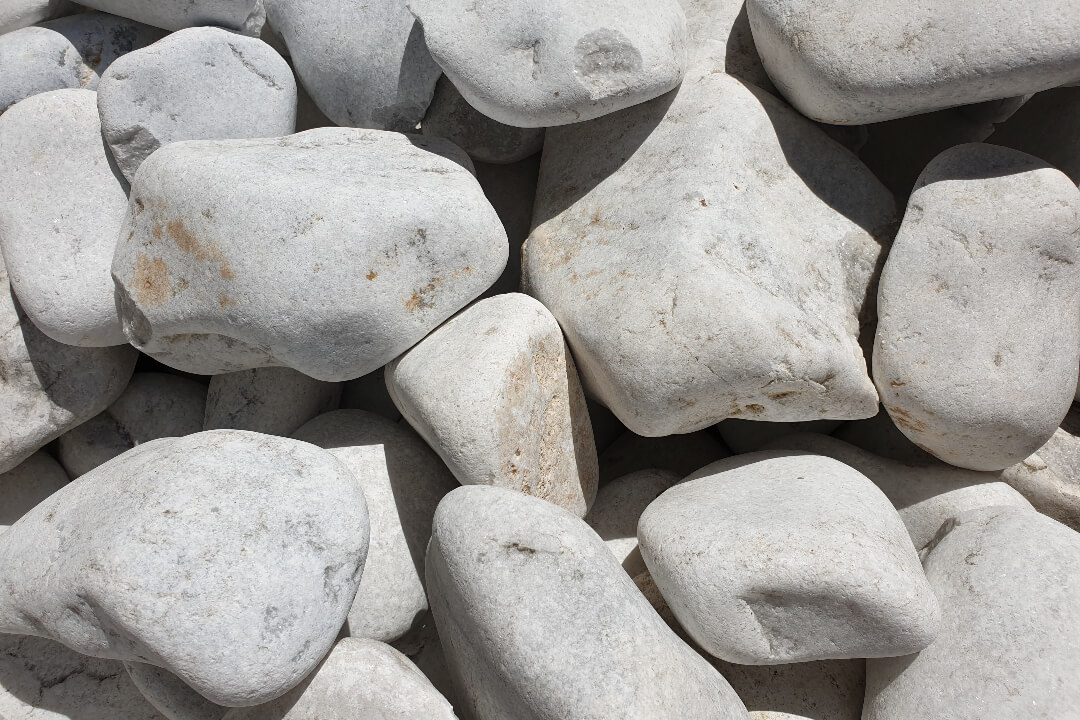 Carrarai Bianco Fehér Márvány Görgeteg. Méretek: 10-20 cm, 20-40 cm. Színvilág: Kékesfehér. Felhasználás: