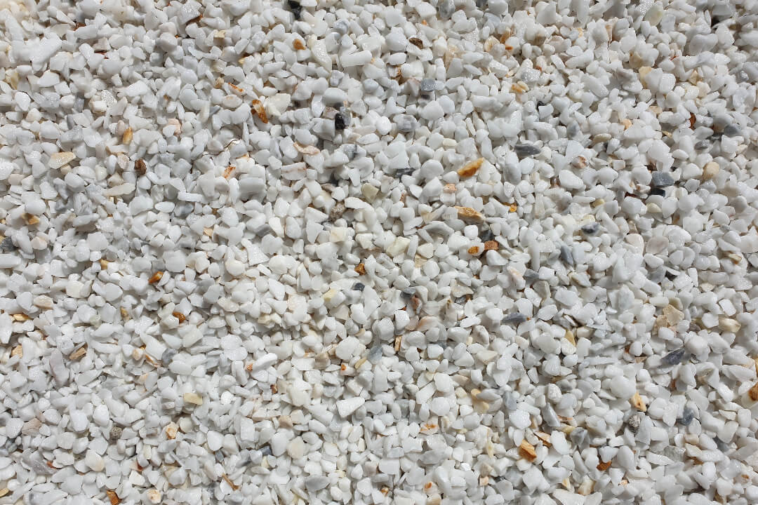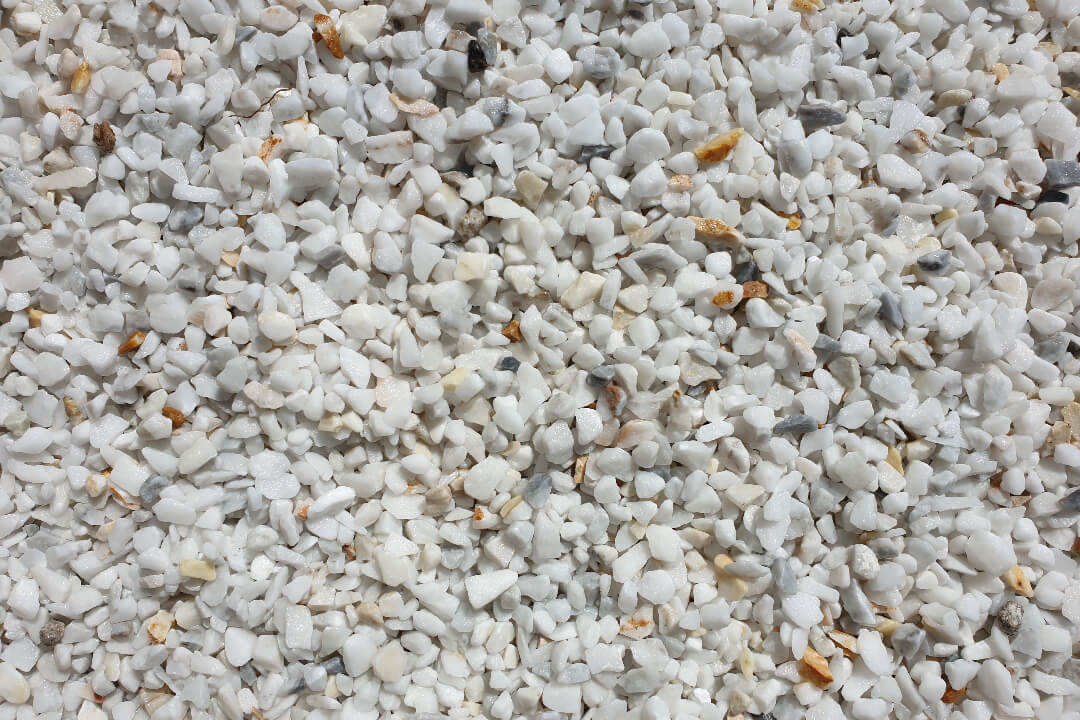 Carrarai Fehér Márványzúzalék. Méret: 8-12 mm. Kiszerelés: 20 kg-os zsák. Színárnyalat: Fehér-Világoskék. A kavicszúzalékok alá fehér geotextília fektetését ajánljuk. Felhasználás: