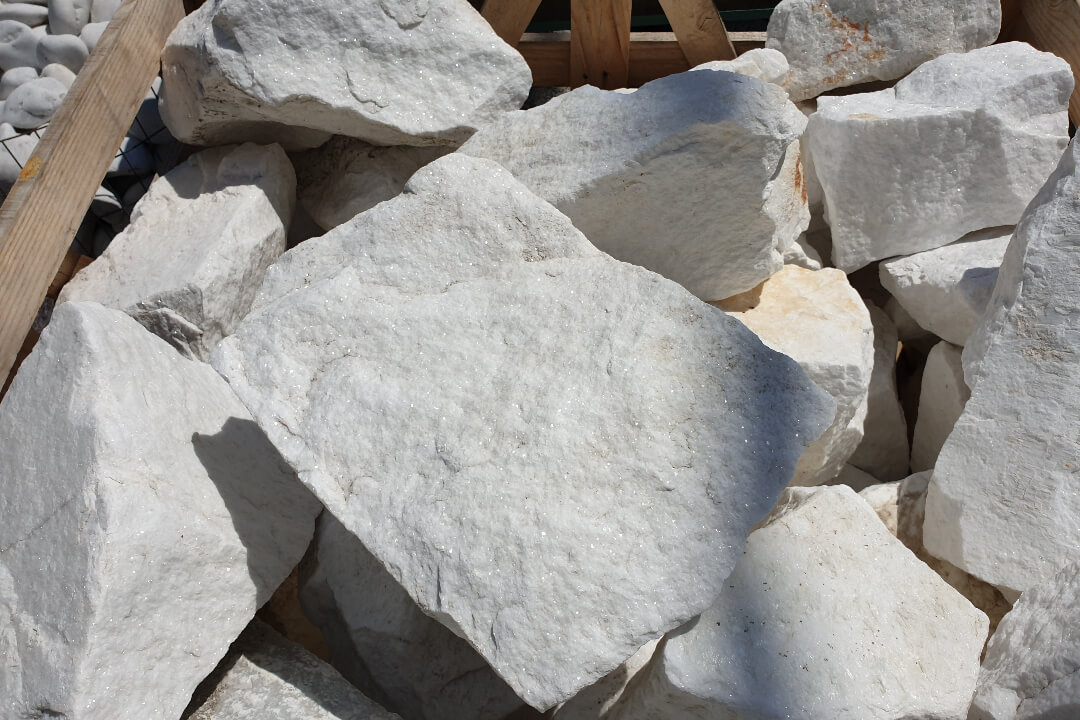 Crystal White Thassosi napfényben csillogós Hófehér Márványszikla. Méretek: 10-20 cm, 20-40 cm. Felhasználás: