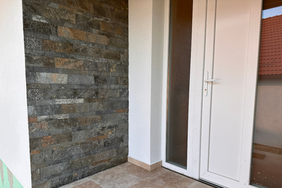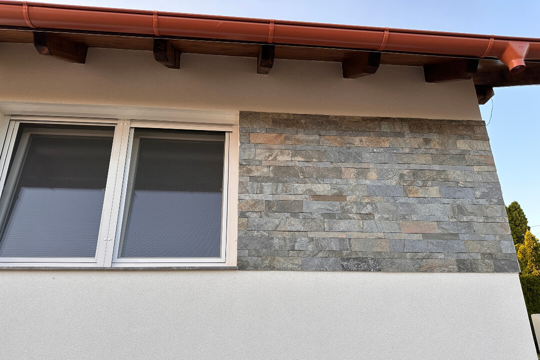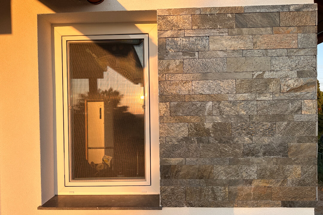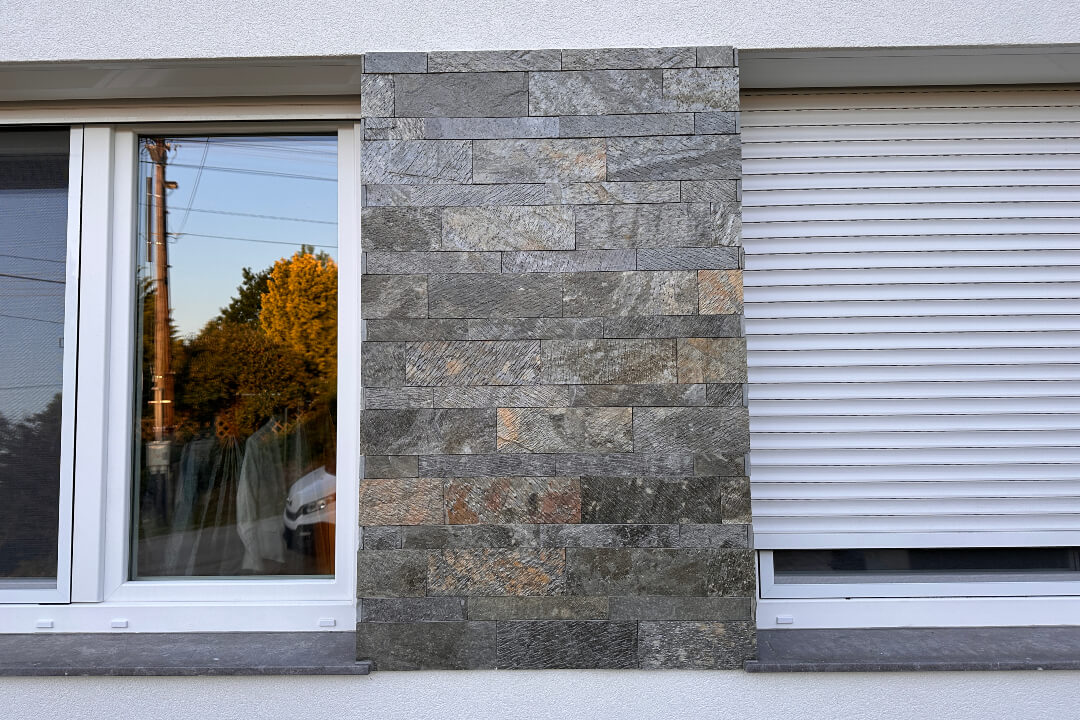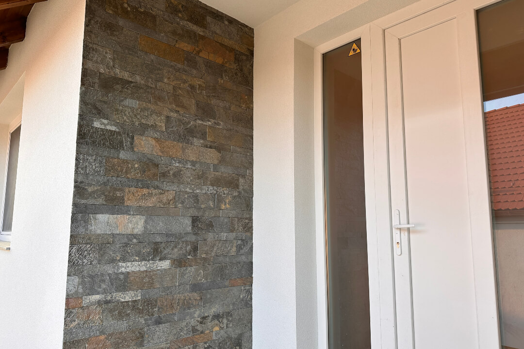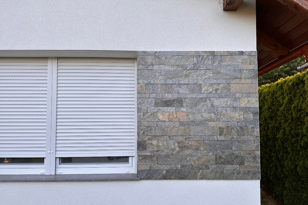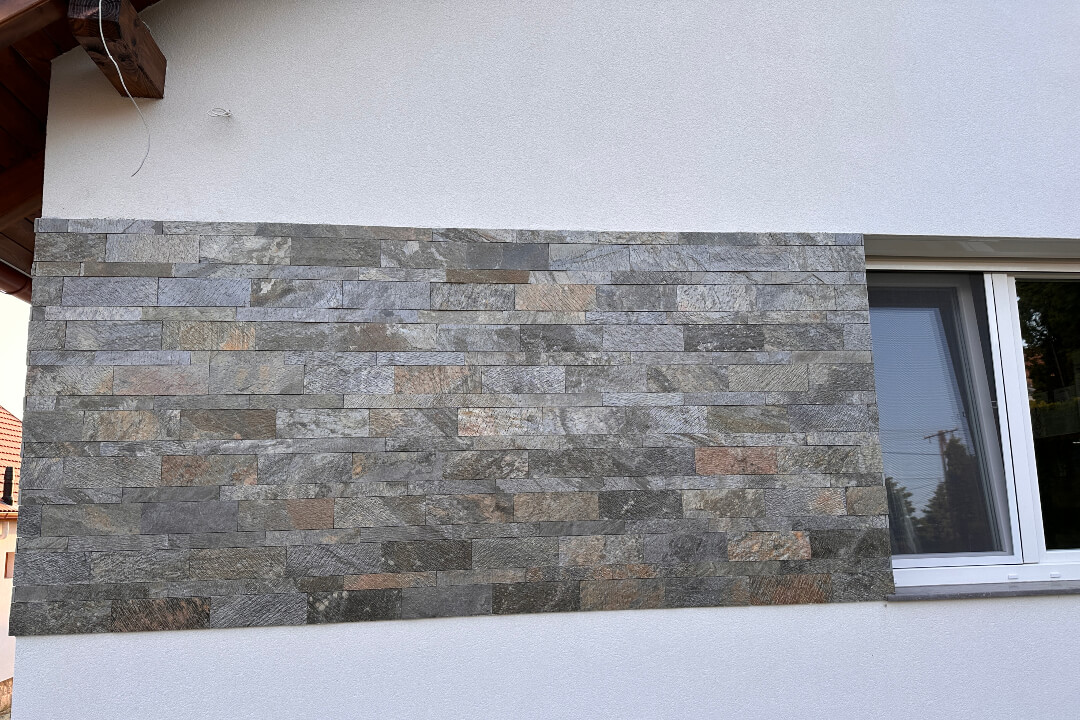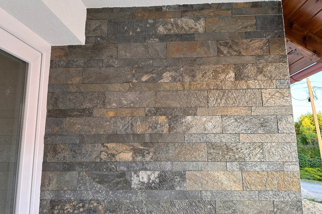 Ajánlatos a Golden Bronze Kvarcit 5×30 cm-es méretűvel vegyítve rakni, ahogy a galériában is látható.