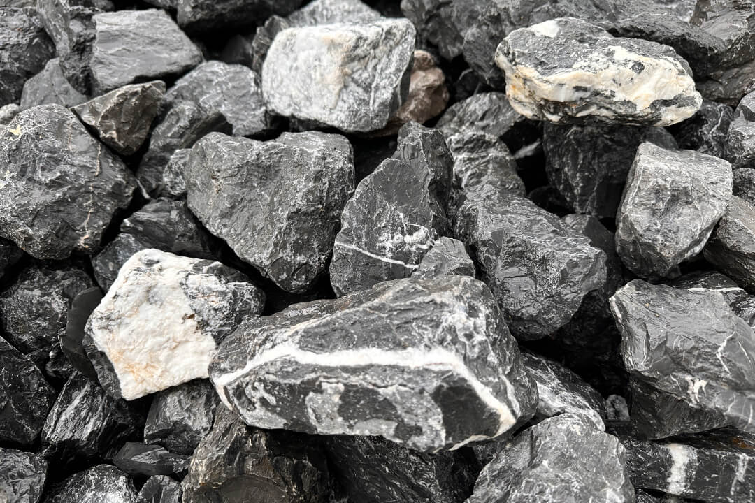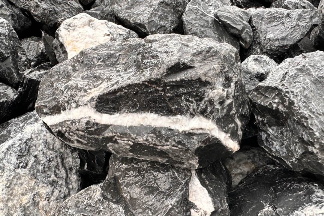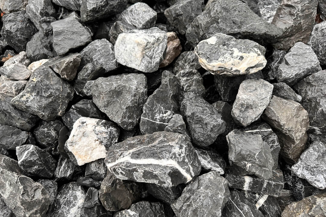 Nero Venato Fekete Márvány Szikla. Méret: 10-20 cm. Felhasználás: