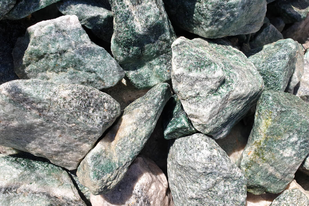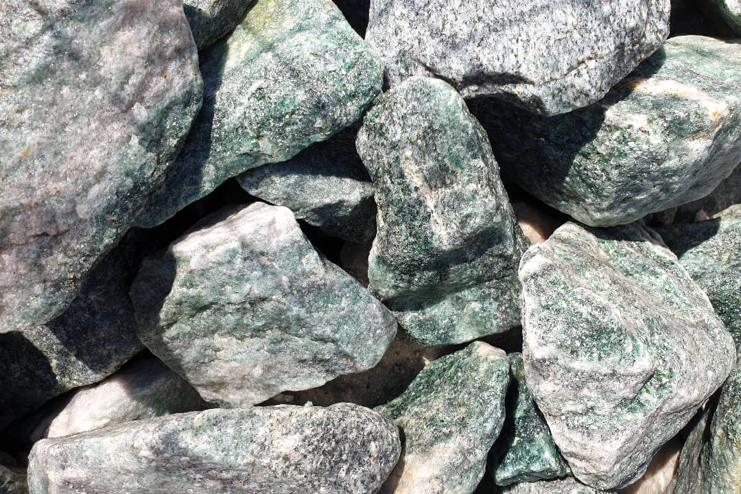 Norvég Zöld Kvarcit Szikla. Méret: 10-20 cm. Színvilág: Alpesi Zöld-Fehér. Felhasználás:
