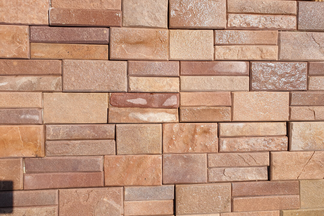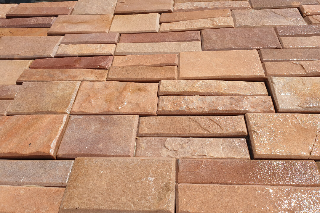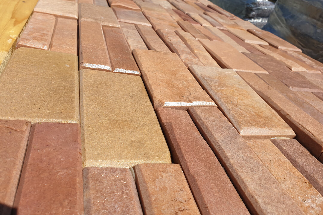 Pink Fózolt Pala Kőpanel Falburkolat. Rózsaszín árnyalatú 15×60 cm méretű természetes kőpanel falburkoló kő. Anyaga: pala. Szélei fózoltak. Kültérre és beltérre is!