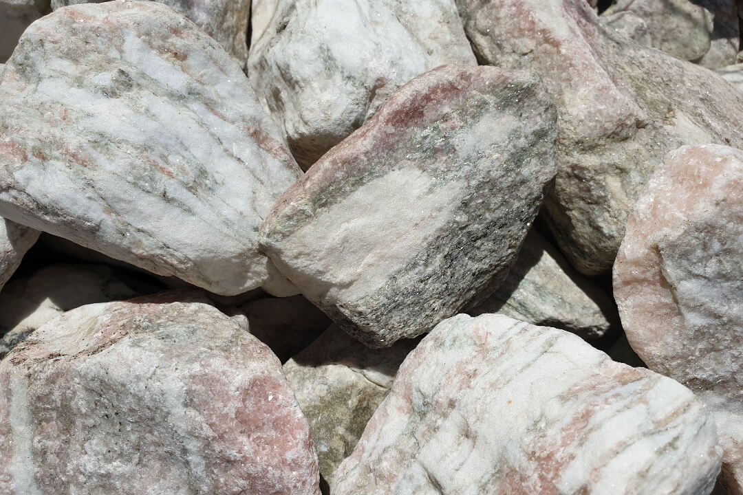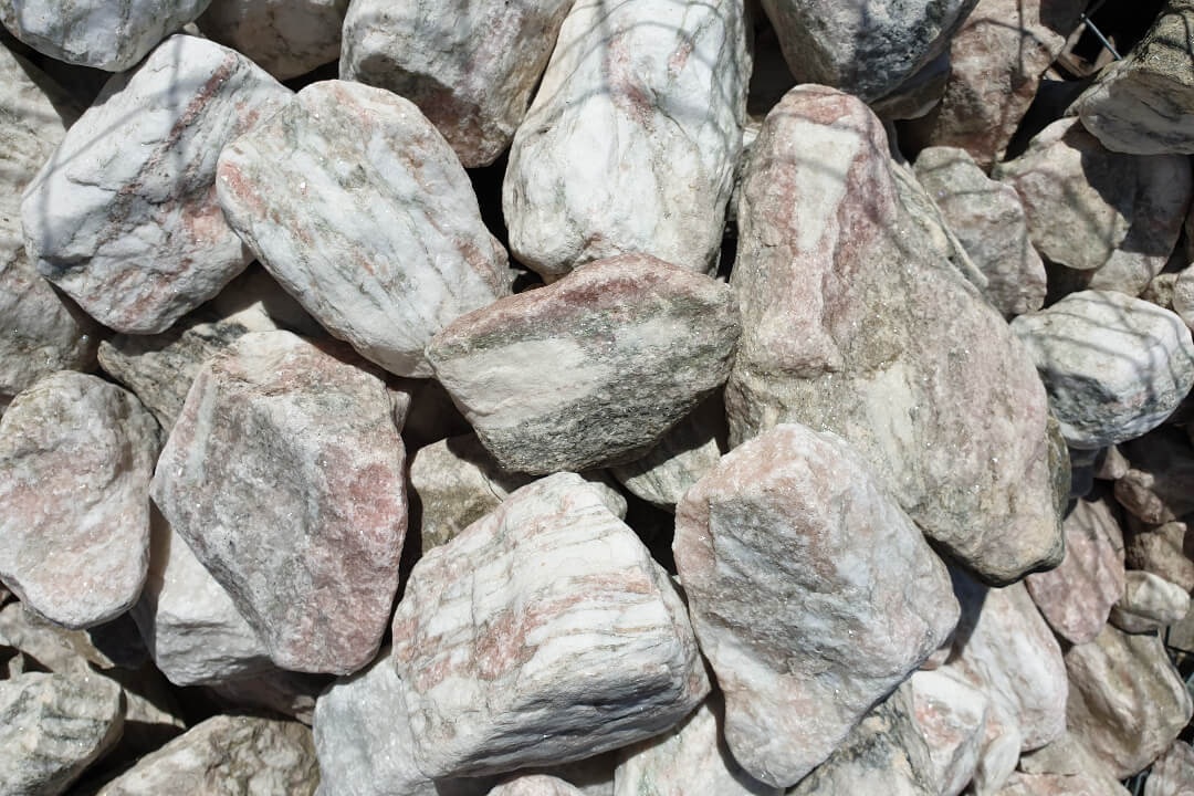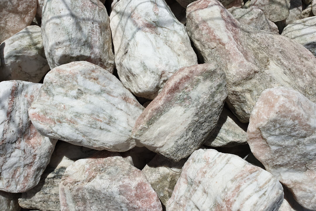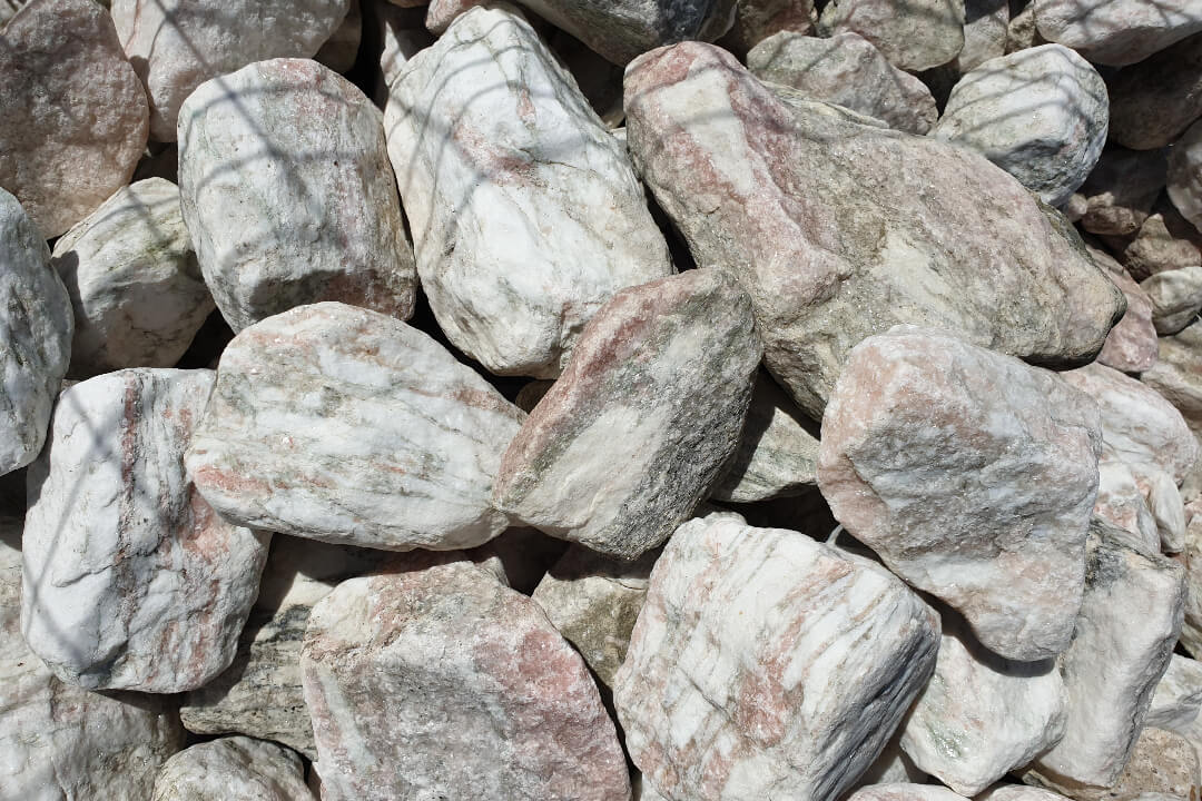 Rosario Rózsa-Fehér Kvarcmárvány Szikla. Méret: 10-20 cm. Színvilág: Rózsa-Fehér. Felhasználás: